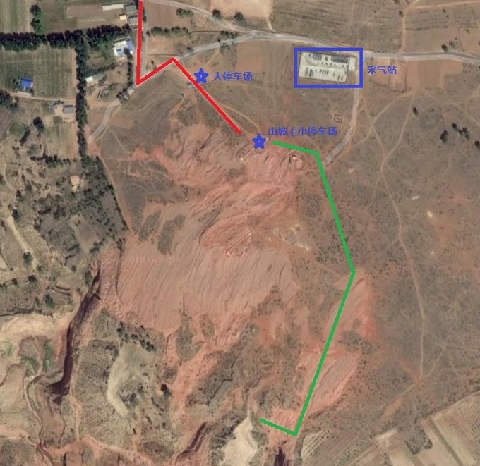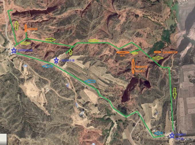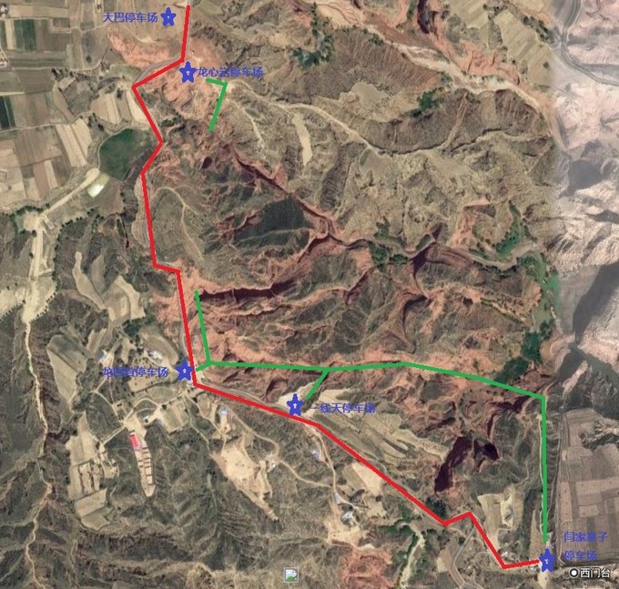 紅線為行車(chē)路線,綠色為步行路線,藍(lán)星為停車(chē)場(chǎng)。純正原創(chuàng),僅供參考。
