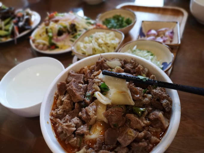 強(qiáng)烈推薦靖邊縣的“龐學(xué)勤兄弟羊肉面”!可以選面條或面片,面條端上來(lái)滿滿的一層羊肉!優(yōu)質(zhì)羊肉面大碗37元,小碗34元,羊肉完全不膻,超級(jí)香!