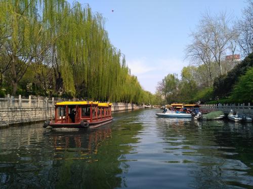 濟南老城的泉水分布最為密集,十大泉群中,僅有老城就占有4個,基本上是現(xiàn)今游船環(huán)城一圈的區(qū)域:從黑虎泉出發(fā),經(jīng)泉城廣場—西門—五龍?zhí)丁竺骱珗@北側(cè)—老東門—青龍橋,密布著大大小小100多處天然甘泉,匯流成的護城河流淌到大明湖,與周圍的千佛山、鵲山、華山等構(gòu)成了獨特的風光,也成為少有的集“山、泉、湖、河、城”于一體的城市,自古就有“家家泉水,戶戶垂柳”、“四面荷花三面柳,一城山色半城湖”的美譽。