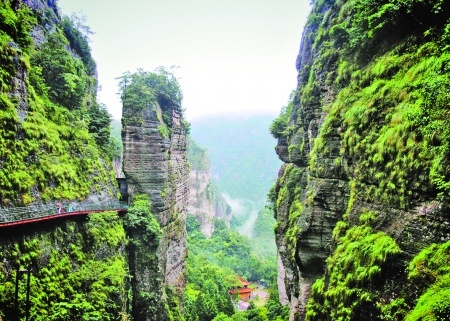 雁蕩山中稱(chēng)“門(mén)”的景點(diǎn)多達(dá)十幾處,而以顯勝門(mén)為最。顯勝門(mén)兩崖高聳兩百米,而間距僅數(shù)米,這種距離的束峙產(chǎn)生的效果至為強(qiáng)烈,令人頭暈?zāi)垦#荒芫么H粽f(shuō)顯圣門(mén)有著“張力十足”的氣勢(shì)的話,那景區(qū)內(nèi)的砩頭溪和松坡溪?jiǎng)t正好與之相對(duì),無(wú)不透露出一派柔美輕松的景象,山水之靈氣在此完美的調(diào)和,兩相映襯,便成無(wú)限風(fēng)光。游顯勝門(mén)景區(qū),可知造物主布局之妙。