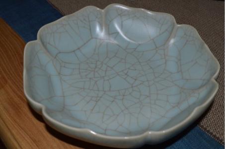 汝瓷開片堪稱一絕,開片的形成,開始時是器物于高溫焙燒下產(chǎn)生的一種釉表缺陷,行話叫“崩釉”。汝窯的藝術(shù)匠師將這種難以控制的、千變?nèi)f化的釉病,通過人為地操作轉(zhuǎn)換為一種自然美妙的裝飾,而且控制的恰到好處,可謂巧奪天工的絕活。釉面開片較細密,多呈斜裂開片,深淺相互交織疊錯,像是銀光閃閃的片片魚鱗,或呈蟬翼紋狀,給人以排列有序的層次感。釉中細小沙眼呈魚子紋、芝麻花和蟹爪紋。并有典型的桔皮釉、冰片釉、茶葉沫,部分柳條紋狀的開片是因手拉坯轆轤旋轉(zhuǎn)時,使泥料分子排列結(jié)構(gòu)朝一定方向而形成的現(xiàn)象。