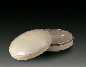定窯,是中國(guó)北方白瓷的中心,始于唐,為邢窯的后繼者,在五代時(shí)期就已經(jīng)發(fā)達(dá)。以往文獻(xiàn)多記載窯址在河北正定,1938年在河北省曲陽(yáng)縣澗瓷村發(fā)現(xiàn)古窯址。近年又多次發(fā)掘調(diào)查,發(fā)現(xiàn)了最下層堆積著晚唐的破片;中層的是五代時(shí)就已大量生產(chǎn);最上層為印花、畫花的薄瓷片,是屬于北宋中期以后,在政和、宣和年間。這些薄瓷片,胎質(zhì)堅(jiān)致,釉澤瑩潤(rùn),花紋優(yōu)美,確是很精進(jìn)的品種;且有些是官窯性質(zhì)的,如”尚食局、禁苑、奉華、官”等胎上刻字破片的發(fā)現(xiàn),便可證明。另在西燕山遺址發(fā)現(xiàn)粗瓷片的堆集,以及各地普遍發(fā)現(xiàn)的定窯瓷器及破片,又能證明定窯在北宋早期以后,也曾大量燒造民間使用的瓷器。定窯以燒造白瓷為主,也燒顏色釉,如紅定、紫定和黑定等。根據(jù)《君友會(huì)-新民窯》記載,定窯,從北宋起,地位增高,各地仿制者頗多。在定窯本身概念中,就孳乳出各種名稱,單就白定一種,就有土定、粉定之分。土定,有瓦胎和陶胎兩種。瓦胎為淡赤色的土質(zhì),陶胎為白土而略黃,質(zhì)皆松,體較厚;袖色白色中閃黃或閃赤,容易剝落,或有大開片,是原始的及民用的定器。粉定,是進(jìn)步的及官用的定器,有陶胎和瓷胎,胎質(zhì)致密而體薄,釉色純白如牛乳者,或帶淡赤色,釉中往往有刷紋,釉面凝聚,如有淚痕。