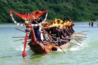 扒龍舟歷史悠久,是多人集體劃槳競賽。龍舟競渡分為請龍、祭龍神、游龍和收龍等幾個版塊。龍舟競渡前一般都要舉行隆重的祭祀儀式,先要請龍、祭神。在端午前要擇吉日從水下起出,祭過神后,安上龍頭、龍尾,再準備競渡。閩、臺則往媽祖廟祭拜。在過去,人們祭祀龍神時氣氛很嚴肅,多祈求福佑、風調雨順、去邪祟、攘災異、事事如意。在湖北的屈原家鄉(xiāng)秭歸,也有劃龍舟祭拜屈原的儀式流傳。