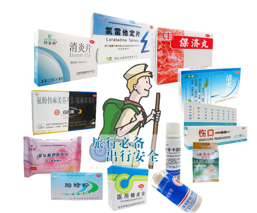一瓶清水,除了解渴,還可沖洗傷口;毛巾、圍巾,可以擦拭傷口,防止出血,還可驅(qū)蟲、防曬等;黃連素、感冒藥、創(chuàng)可貼、繃帶、暈車藥、消毒紙巾、酒精;慢性病患者帶上常用藥,老人還可備盒速效救心丸。