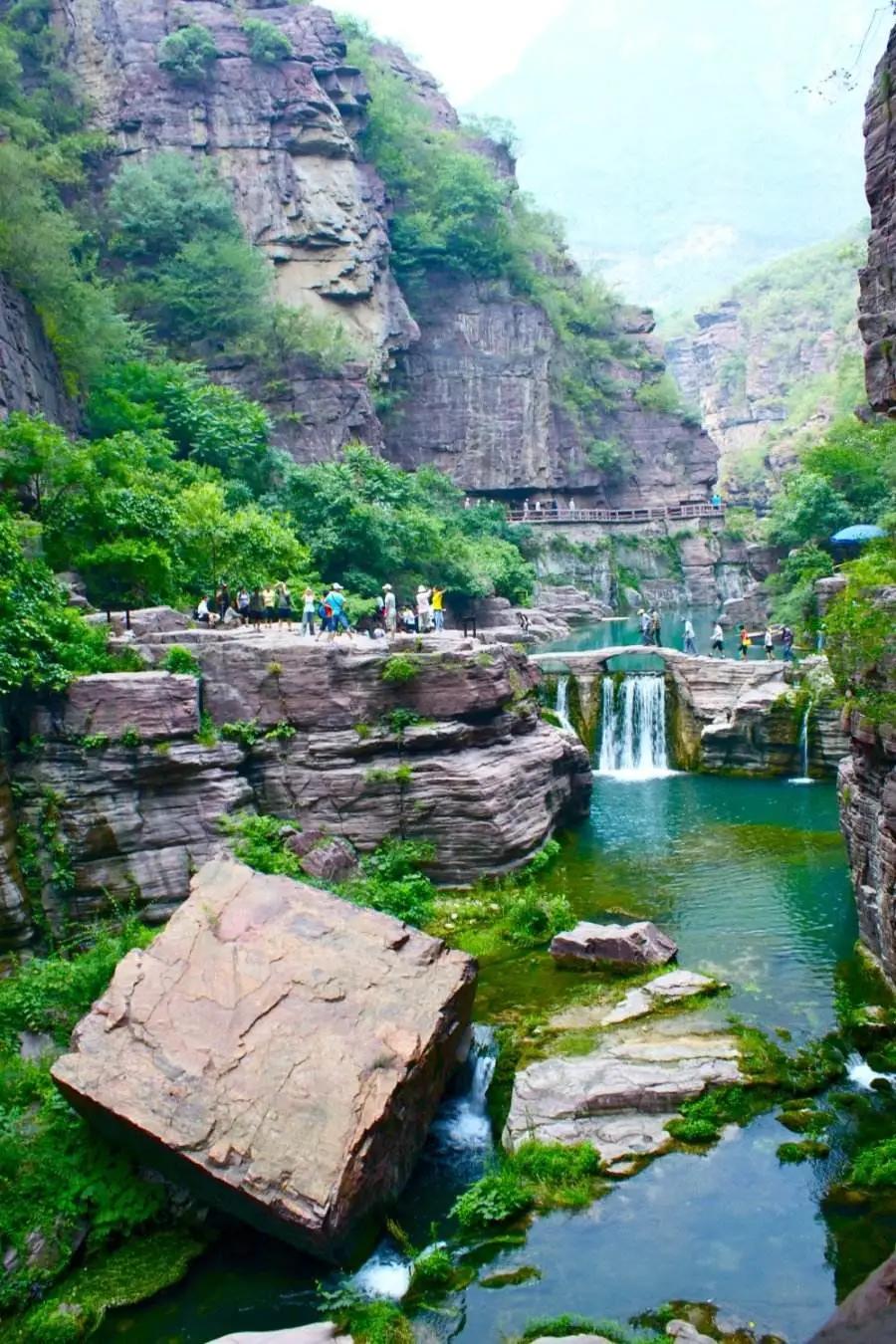 后前往云臺山,自行游覽盆景峽谷——【溫盤峪】(又名紅石峽)。那里集華夏山水與方寸之中;欣賞白龍瀑、黑龍洞、懸石、相吻石、含羞石、天女散化瀑等景觀,觀北方罕見景觀鐘乳石,盡情領(lǐng)略“真山、真水、真空氣”,游覽子房湖, 后游覽云臺山最高峰【茱萸峰】,茱萸峰是歷代文人墨客,僧道修行的圣地,這里植被茂密,古樹參天,有千年名樹紅豆杉,五角楓樹,太行花,森林覆蓋率高達(dá)93%,滿山覆蓋的都是原始次生林,有天然氧吧之美譽(yù)。踏千階的云梯棧道登上海拔1308米的茱萸峰頂,但見群山連綿,峰涌云動,使人頓生“會當(dāng)凌絕頂,一覽眾山小”的豪邁氣概。俯視腳下,群峰形似海浪涌。山頂氣候多變,倏忽間風(fēng)起云生,白霧從山間咕嘟嘟地涌出,紅日隨即隱去。山峰在云霧中出沒,云騰山浮,如臨仙界。玻璃棧道位于云臺山茱萸峰鳳凰嶺景點(diǎn),在海拔1080米的半山腰上依崖而建。【玻璃棧道】分為兩段,其中一段沿崖壁呈U型,另一段懸于千米懸崖之上,總長400余米,寬約1.6米。(玻璃棧道體驗(yàn)費(fèi),為20元/人需自理,如遇景區(qū)政策性關(guān)閉,則取消該景點(diǎn),不另行通知,不退任何費(fèi)用)游覽結(jié)束返回聊城。