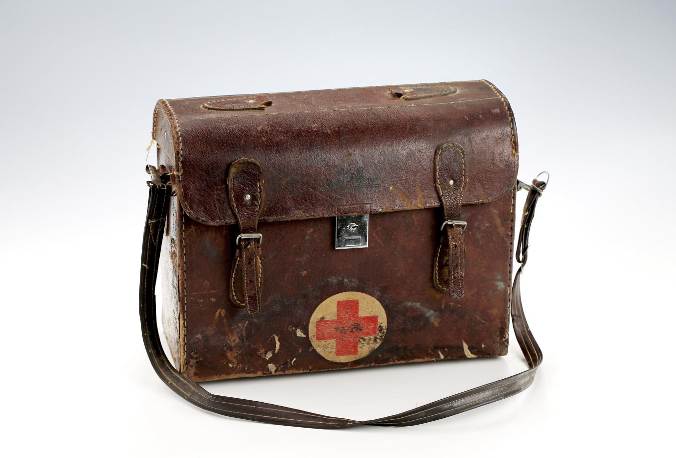 這只藥箱年代為二十世紀(jì)八十年代初,材質(zhì)為皮革。長(zhǎng)33厘米,寬15厘米,高26厘米,是國(guó)家一級(jí)文物。