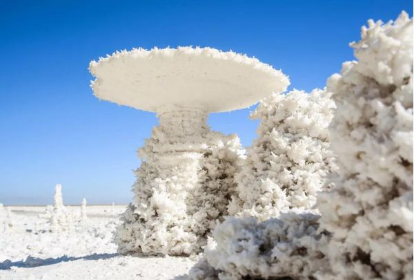 而鹽花是鹽湖中的鹽結晶形成的特殊形狀的結晶體,由于結晶時的溫度,氣候,時間長短,濃度不同等原因,形成了各式各樣,萬千變化的美麗鹽花。