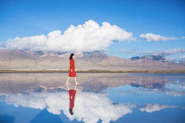 鹽湖湖面時而碧水蕩漾,時而蒼蒼莽莽、一片潔白,四周牧草茵茵,羊群似珠,遠處林木崢嶸,雪山含玉,天空碧藍悠遠,白云朵朵,倒映在湖水中。鹽湖的“鏡”與“凈”,置身其中,會讓你有種想要展翅飛翔的感覺。在那里,時間仿佛靜止般,天地間是一片純凈的白與藍,就像做了一場幻境般的夢……這么美麗的風景,怎么拍出來網紅大片呢?一起來看~