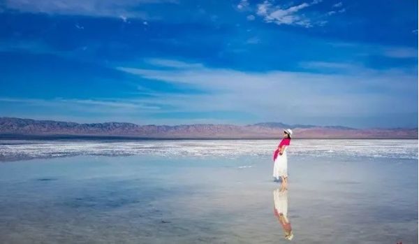 遠(yuǎn)遠(yuǎn)望去就會(huì)發(fā)現(xiàn),東臺(tái)吉乃爾湖就跟馬爾代夫一樣,湖水上方的天空格外的清透明亮,滿眼的藍(lán)色給人以極其強(qiáng)烈的視覺沖擊,猶如人間天堂。這里雖不是真正的馬爾代夫,卻又勝似于馬爾代夫,畢竟在柴達(dá)木盆地的荒蕪之中能看到這么一抹絕美的水色,是極為難得與珍貴的。而身為鹽湖屬性的東臺(tái)吉乃爾湖,由于還處于原始狀態(tài),所以比茶卡鹽湖顯得更為干凈。