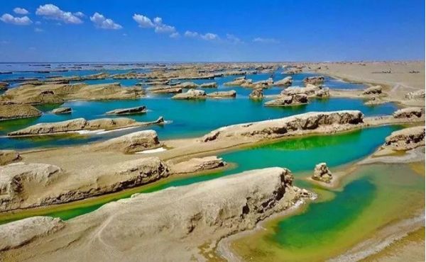 走在這里,你還可以看到鬼斧神工的“水上雅丹”,在陽光的照耀下湖水波光粼粼,同遠(yuǎn)處的沙丘形成了一幅美麗動(dòng)人的絕世畫卷,那種讓人心神搖曳的美可能無法用語言準(zhǔn)確的描述,只有身臨其境才能真正的體驗(yàn)到何謂曠世奇景。