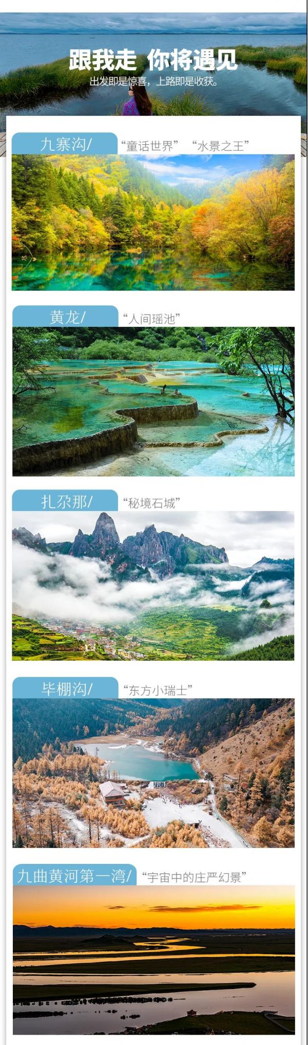 4、九寨溝景區(qū)實行分區(qū)域開放,開放區(qū)域為溝口經(jīng)諾日朗瀑布至長海,扎如溝的扎如寺及日則溝的鏡海;其中,長海、五彩池、鏡海、諾日朗瀑布、樹正群海、雙龍海瀑布、扎如寺等景觀原則上為步行游覽區(qū),具體游覽方式請聽從隨車講解員安排;