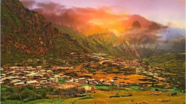 那里的山峰、村寨,在陽光的照耀下,呈現(xiàn)著夢(mèng)幻般的色彩,如一幅絕美的風(fēng)景油畫。
