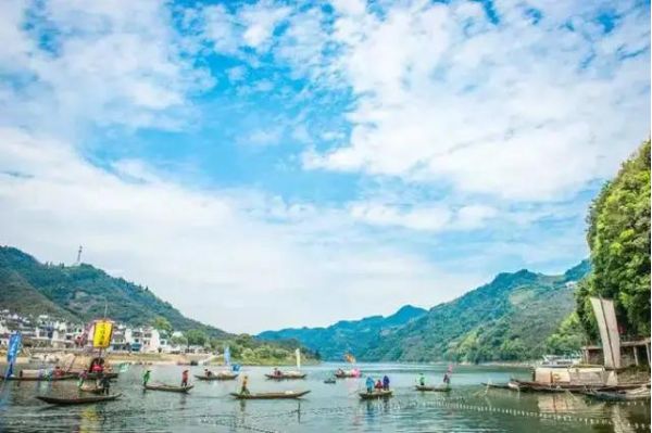 7:00準(zhǔn)時(shí)集合出發(fā),約8:30到達(dá)深渡碼頭,乘坐畫廊游船,這是一條聞名中外的“唐詩(shī)之路”,今有“山水畫廊、清涼世界”的美譽(yù)。它像一條閃閃發(fā)亮的銀練,穿行于錦峰秀嶺、山鄉(xiāng)古建筑之間。兩岸點(diǎn)綴著粉墻黛瓦的徽派建筑,當(dāng)清晨晨霧縈繞抑或傍晚炊煙裊裊之時(shí),頗有中國(guó)水墨山水畫的味道。