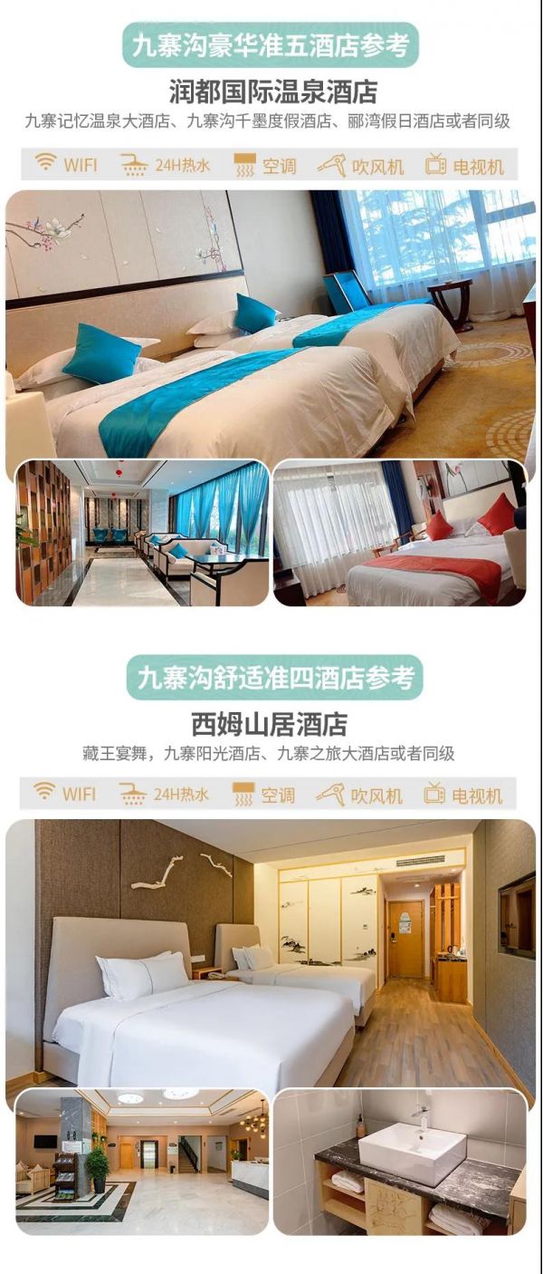 豪華準(zhǔn)五:九寨記憶溫泉大酒店,潤(rùn)都國(guó)際溫泉酒店,九寨溝千墨度假酒店、酈灣假日酒店或者同級(jí)