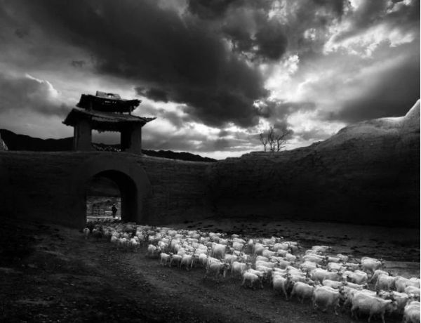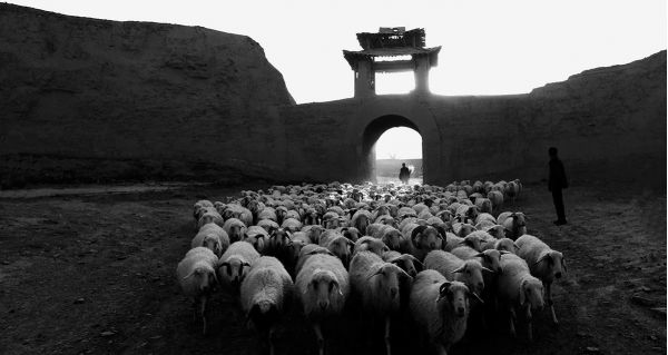 5、景泰古城的落日城樓,牧羊歸來的場(chǎng)景,光影在城樓斜陽(yáng)里,牧群歸來,塵世喧囂的生活。