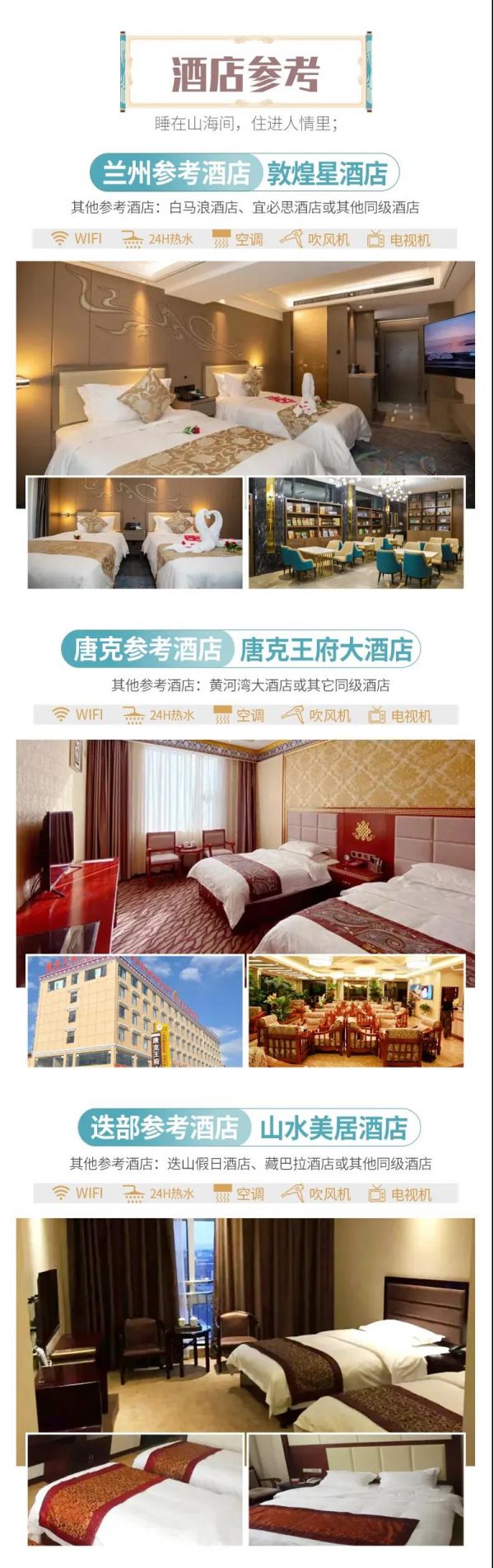 l 迭部:山水美居酒店、迭山假日酒店、藏巴拉酒店或其他同級(jí)酒店