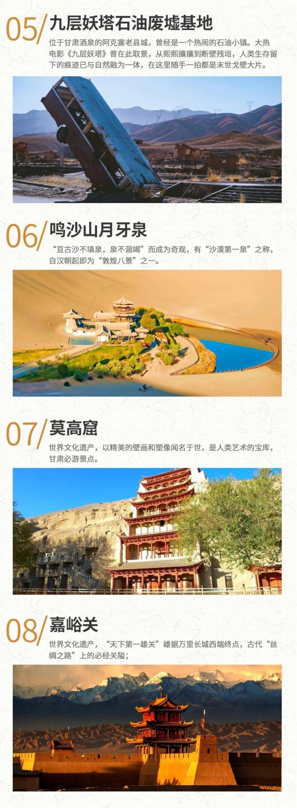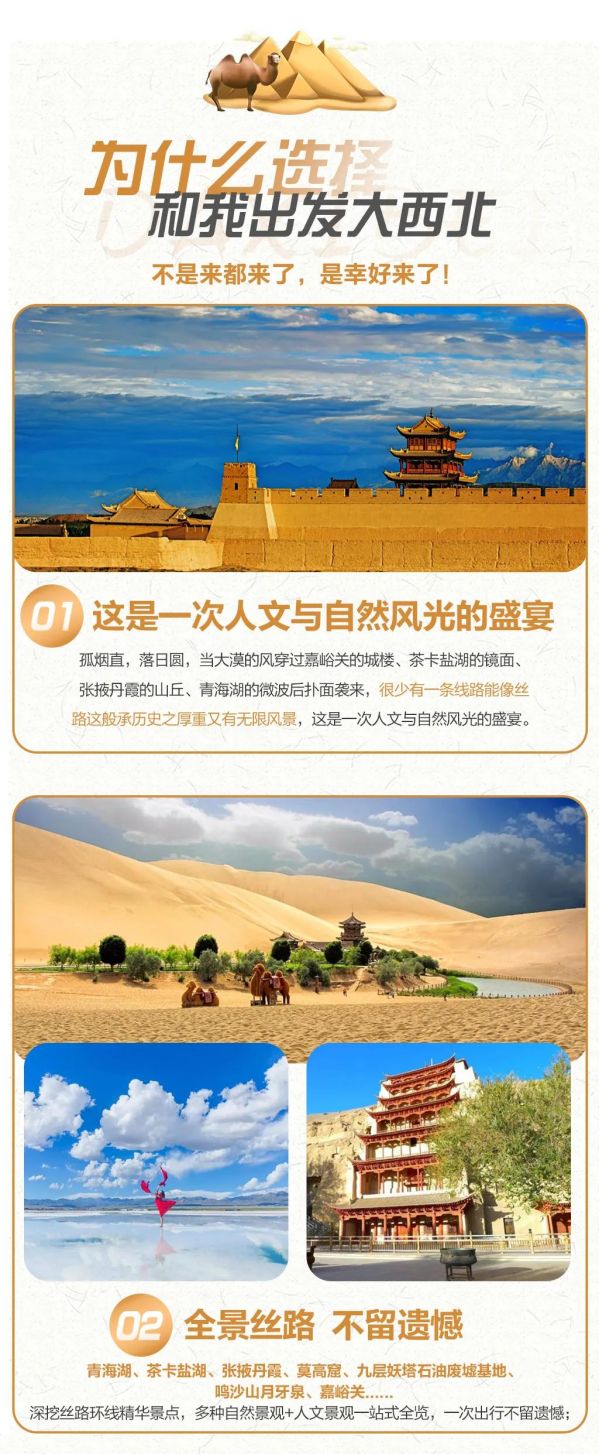 丹霞地質(zhì)公園+嘉峪關(guān)+敦煌+莫高窟+鳴沙山月牙泉+阿克塞石油小鎮(zhèn)+大柴旦翡翠湖+柴達木盆地+茶卡鹽湖+青海湖二郎劍景區(qū)+塔爾寺