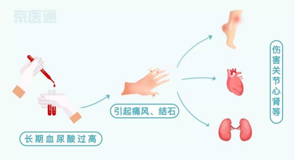 注意:有些患者沒有出現(xiàn)痛風(fēng),但也會引起心、腎損害等。
