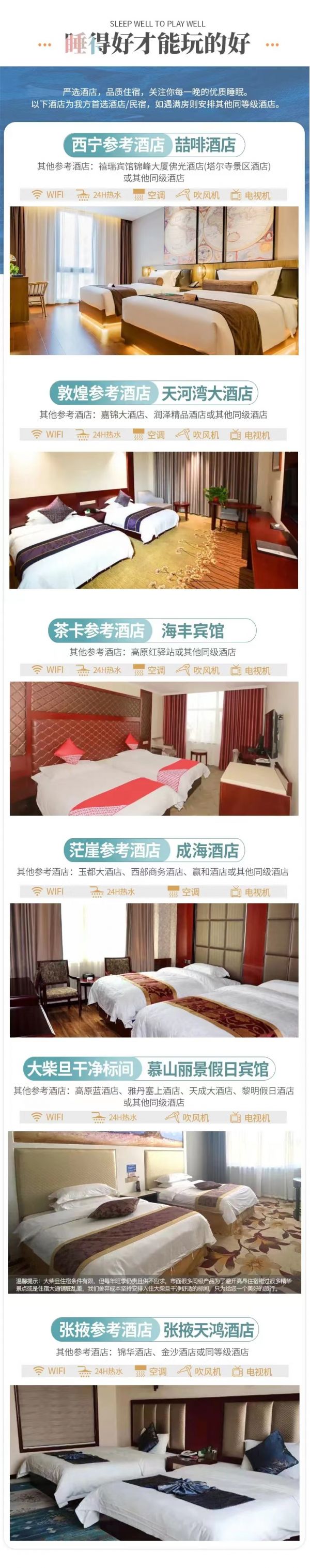 5、該線路為特種線路,當(dāng)?shù)鼐频昙安惋嫍l件無(wú)法與城市相比,請(qǐng)游客做好心理準(zhǔn)備;賓館內(nèi)無(wú)牙膏牙刷、拖鞋等一次性衛(wèi)生用品,請(qǐng)自備個(gè)人衛(wèi)生用品;沿途商店較少,民俗習(xí)慣亦有不同,游客可自備咸菜、小吃、干糧等零食,以備不時(shí)之需。
