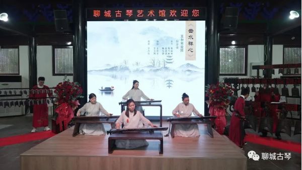 揭牌儀式后,各位領(lǐng)導(dǎo)和與會嘉賓一同觀看了由古琴學(xué)會-至和雅樂團(tuán)精心編排演繹的節(jié)目:鐘磬樂《云水禪心》,小合唱《春風(fēng)十萬里》,器樂合奏《紅歌頌黨》。
