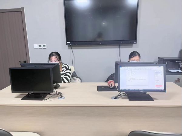 晚上6:00,唐靜雯和邢雯慶來(lái)到了實(shí)訓(xùn)室。唐靜雯給邢雯慶安排了工作,邢雯慶幫唐靜雯一起完成了劉老師交代的任務(wù)。6:40,唐靜雯和邢雯慶一起離開(kāi)實(shí)訓(xùn)室。苗苗在完成劉老師下午布置的表格任務(wù)。