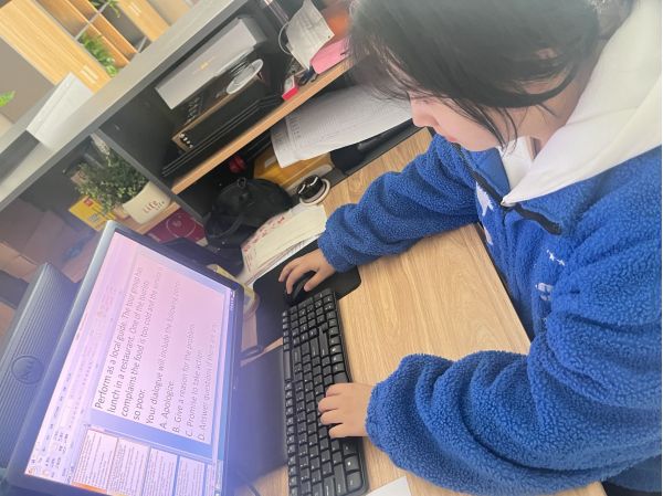 下午2:20,我們來到了實(shí)訓(xùn)室,由劉老師為我們進(jìn)行英語環(huán)節(jié)的指導(dǎo)。