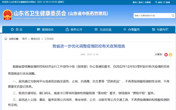 自2022年12月5日零時(shí)起對(duì)有關(guān)疫情防控政策措施進(jìn)行優(yōu)化調(diào)整