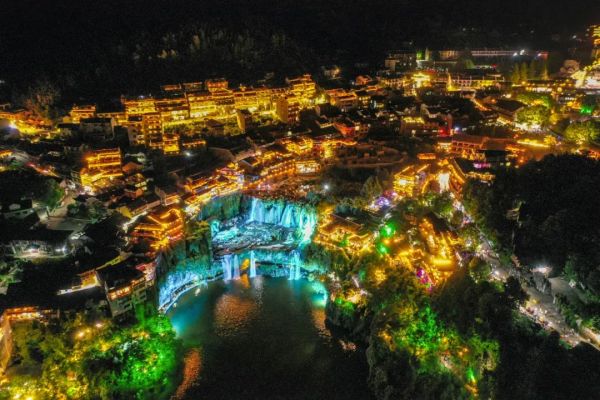 湖南湘西州芙蓉鎮(zhèn)夜景。湘西芙蓉鎮(zhèn)文化旅游開發(fā)有限公司供圖“湘西太美了,有時(shí)間一定要去體驗(yàn)一下……”這幾天,湘西文旅公眾號(hào)熱鬧非凡,不少游客朋友看到我的短視頻后來點(diǎn)贊留言。