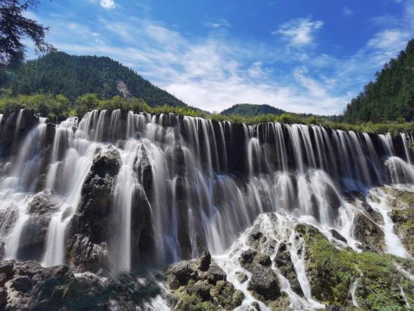 九寨溝以絕天下的原始、神秘氣氛而聞名。傳說(shuō)很久很久以前,神勇的山神達(dá)戈熱戀著美麗的女神沃莫色莫,達(dá)戈用風(fēng)云磨成一面寶鏡送于色莫,而色莫不慎將此寶鏡跌為108個(gè)碎片,化作108個(gè)海子(高原湖泊),從而成為九寨溝最美麗的108個(gè)景觀。這里雪峰玉立,青山流水,交相輝映,這里的瀑布、溪流更是迷人,如飛珠撒玉,異常雄偉秀麗。