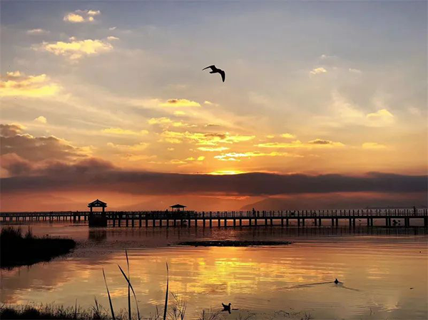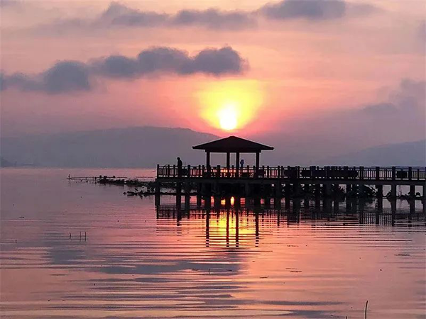 “金光穿洞”如夢似幻,絢麗光芒灑在江面上、屋頂上……好像給雙龍橋鍍上了一層溫柔的濾鏡無盡浪漫。