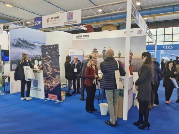 中國駐羅馬旅游辦事處攜手中國國際航空公司參加博覽會,聯(lián)合打造了“文旅+航空”綜合展臺,以航旅一體化推介形式向廣大意大利旅行商和游客發(fā)出“在春暖花開之時,暢游美麗中國”邀約。