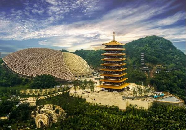 ?佛頂宮;作為佛頂圣境區(qū)的核心之一,佛頂宮坐落于牛首山西峰之處,建基于歷史遺留礦坑之上,總建筑面積約13.6萬(wàn)平方米,與佛頂塔共同構(gòu)成牛首西峰新景象,與牛首東峰遙相呼應(yīng),再現(xiàn)牛首"雙峰雙闕”并峙的宏盛景。整個(gè)佛頂宮以佛祖頂骨舍利供奉溝主題,外部分為大穹頂和小穹頂兩個(gè)部分,寓意外目錄供養(yǎng)和內(nèi)供養(yǎng)穹頂形如佛祖袈裟覆蓋在小穹頂之上,象征著佛祖的無(wú)量加持;小穹頂下部為蓮花寶座造型,上部為摩尼寶珠造型,上下結(jié)合形成"蓮花托珍寶”的神圣意象。