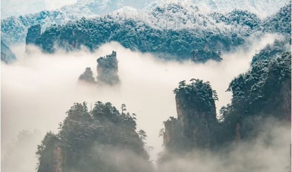 日落,艷陽(yáng),云海,飛雪。’你能想象的到的任何的天氣都影響不到張家界的美。