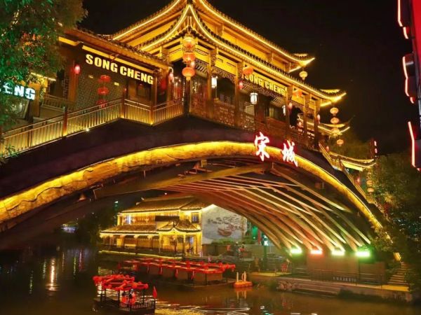 一入宋城、長橋臥波、橫架宋河。古意盎然 朝暮煙浮,宋閣初見 見之傾心。