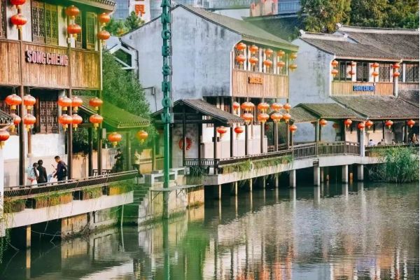 穿過這里,就仿佛穿越到了宋朝時期繁華的景象,眼前的建筑古香古色,依舊是江南特色的青瓦白墻,卻少了城市車水馬龍的喧囂,取而代之的是游人如織和琳瑯滿目的古代店鋪。