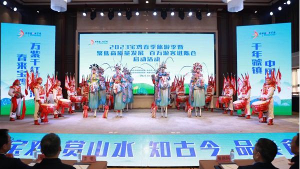 來自甘肅、青海、寧夏、四川、重慶、山西、河南等省市400余家旅行社及旅行商代表,寶雞各旅游區(qū)管委會(huì)、縣區(qū)文旅局、4A級(jí)以上旅游景區(qū)及各旅游協(xié)會(huì)負(fù)責(zé)人,中省市新聞媒體記者共計(jì)600余人參會(huì)。會(huì)上,中共陳倉(cāng)區(qū)委書記馬霄致辭,市文化和旅游局局長(zhǎng)周保君發(fā)布了2023寶雞春季文化旅游季、“引客入寶”、旅游惠民、旅游線路等相關(guān)政策信息,陳倉(cāng)區(qū)人民政府副區(qū)長(zhǎng)杜石磊介紹“聚焦高質(zhì)量發(fā)展·百萬游客進(jìn)陳倉(cāng)”活動(dòng)情況,寶雞旅游景區(qū)與旅行社代表簽訂了旅游合作協(xié)議,領(lǐng)導(dǎo)為“百萬活動(dòng)”進(jìn)陳倉(cāng)代表授旗,與會(huì)領(lǐng)導(dǎo)共同啟動(dòng)了活動(dòng),儀式由陳倉(cāng)區(qū)人民政府區(qū)長(zhǎng)馬小鋒主持。市政協(xié)副主席張德科出席了啟動(dòng)活動(dòng),陳倉(cāng)區(qū)區(qū)委、區(qū)人大、區(qū)政府、區(qū)政協(xié)和區(qū)級(jí)相關(guān)部門主要領(lǐng)導(dǎo)參加了啟動(dòng)活動(dòng)。