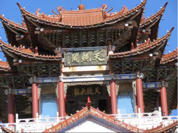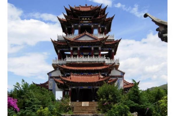 天鏡閣在大理洱海東玉案山上,山勢(shì)到這里忽向洱海伸去,三面臨水,懸崖壁立,地勢(shì)險(xiǎn)要,有山環(huán)吞海,澄海如鏡之勢(shì)。