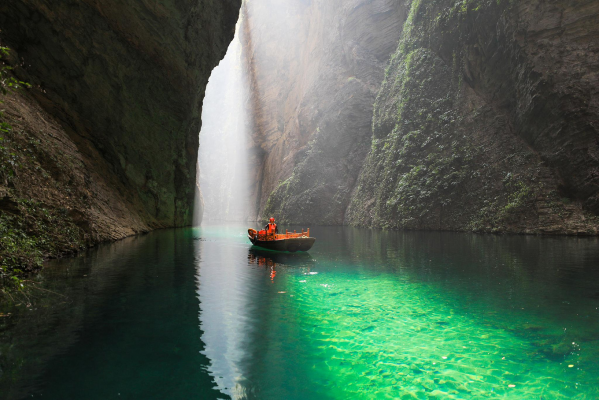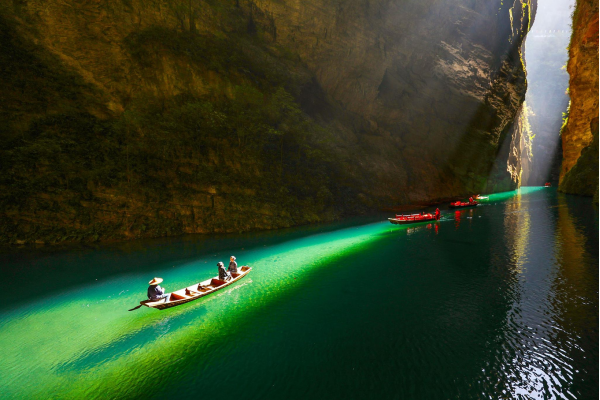 五尺門(mén)船行至此,游人驚呼:眼前出現(xiàn)了一線天,山壁合縫疑無(wú)路,漸漸現(xiàn)出五尺門(mén);天空灑下桃花雨,絕壁巖根擦船身。這道景觀是奇中之奇,險(xiǎn)中之險(xiǎn),不僅給人柳暗花明的新奇之感,也給人一種絕處脫險(xiǎn)的驚喜。