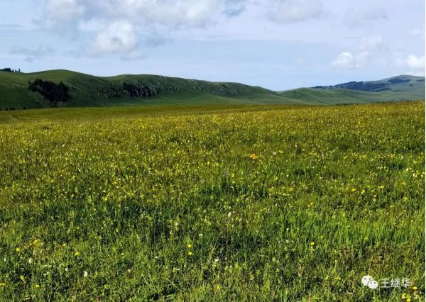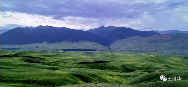 一看手機今天是小暑,這應(yīng)該是三伏天最熱的時候,可是我們在在這大山里凍得瑟瑟發(fā)抖。這個地方叫人體草原,遠處是九曲18灣,整個的山脈像一個個穿著綠色的緊身內(nèi)衣的人體。你可以想象這是一個多大的人有多少公斤。造物主是多么神奇,這里造個人,哪里再仿造一個。像量子力學(xué)糾纏的原理。