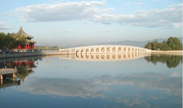 頤和園的面積達290公頃(4350畝),其中水面約占3/4。整個園林以萬壽山上高達41米的佛香閣為中心,根據(jù)不同地點和地形,配置了殿、堂、樓、閣、廊、亭等精致的建筑。山腳下建了一條長達728米的長廊,猶如一條彩紅把多種多樣的建筑物以及青山、碧波連綴在一起。整個園林藝術構思巧妙,在中外園林藝術史上地位顯著,是舉世罕見的園林藝術杰作。