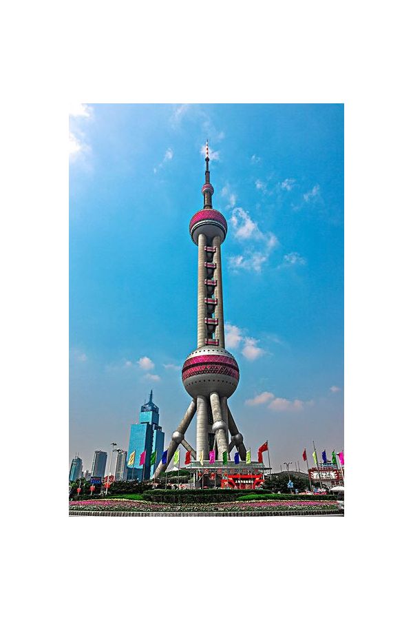 東方明珠廣播電視塔,簡(jiǎn)稱“東方明珠”,位于上海市浦東新區(qū)陸家嘴世紀(jì)大道1號(hào),地處黃浦江畔,背擁陸家嘴地區(qū)現(xiàn)代化建筑樓群,與隔江的外灘萬(wàn)國(guó)建筑博覽群交相輝映,1991年7月30日動(dòng)工建造,1994年10月1日建成投入使用,是集都市觀光、時(shí)尚餐飲、購(gòu)物娛樂(lè)、歷史陳列、浦江游覽、會(huì)展演出、廣播電視發(fā)射等多功能于一體的上海市標(biāo)志性建筑之一。截至2019年,為亞洲第六高塔、世界第九高塔。東方明珠廣播電視塔主體為多筒結(jié)構(gòu),由3根斜撐、3根立柱及廣場(chǎng)、塔座、下球體、5個(gè)小球體、上球體、太空艙、發(fā)射天線桅桿等構(gòu)成,總高468米,總建筑面積達(dá)10萬(wàn)平方米。