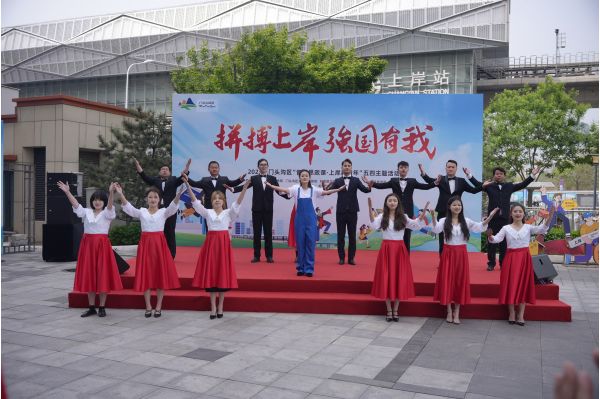 “音樂思政課·上岸新青年”五四主題活動在北京門頭溝龍湖北京長安天街室外廣場——地鐵S1線上岸站舉辦。