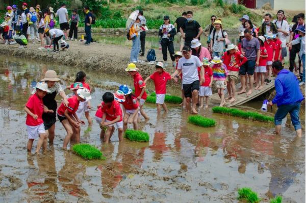 此時(shí)的長(zhǎng)安唐村,不少家長(zhǎng)帶著孩子,挽起褲腿踩進(jìn)泥土中,在園區(qū)工作人員的帶領(lǐng)下,親手栽種下一棵棵秧苗,參與作物的自然成長(zhǎng)。“很多游客都很珍惜插苗體驗(yàn)的親子時(shí)光,對(duì)他們來(lái)說這種與自然親密接觸的機(jī)會(huì)很珍貴。”園區(qū)一名工作人員說。
