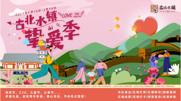 據(jù)介紹,本次活動(dòng)將持續(xù)至6月30日。其間,古北水鎮(zhèn)將圍繞每個(gè)節(jié)日分別推出專屬打卡點(diǎn)。母親節(jié)及520情人節(jié)期間,景區(qū)工作人員將在不同時(shí)間段,為在打卡點(diǎn)合照留影的游客準(zhǔn)備鮮花作為“愛(ài)的紀(jì)念”。520情人節(jié)期間,日月島廣場(chǎng)將推出大型情歌樂(lè)隊(duì)現(xiàn)場(chǎng)演出。兒童節(jié)當(dāng)天,14周歲以下的小朋友均可免票進(jìn)入古北水鎮(zhèn)童玩館。