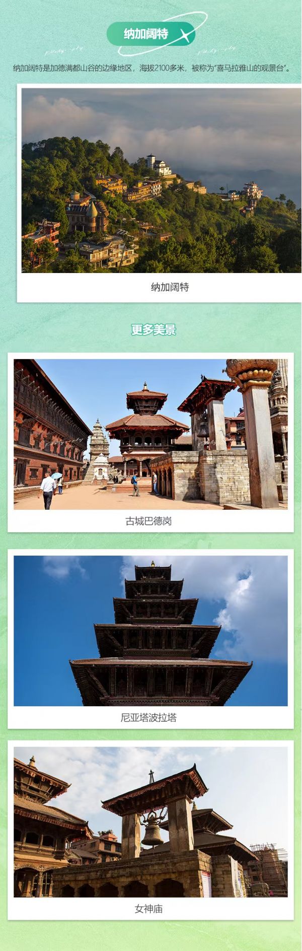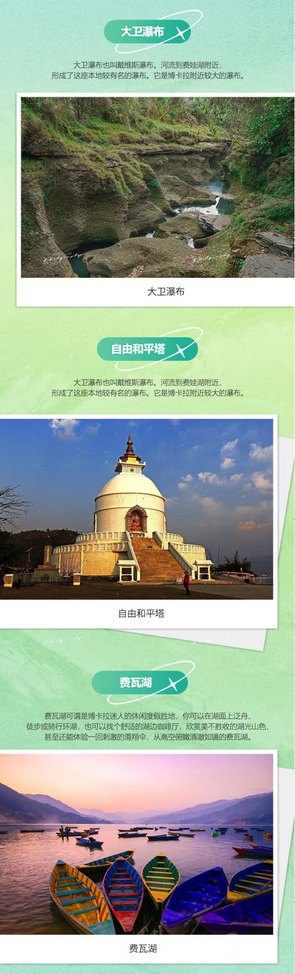3.門票: 含大衛(wèi)瀑布、費瓦湖泛舟、加德滿都杜巴廣場、巴德崗杜巴廣場、奇特旺森林公園套票、猴廟、大佛塔景點門票