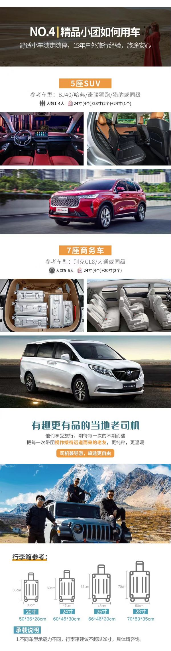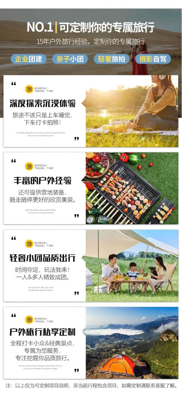 4、如途中遇不可抗因素(如修路、塌方、車輛事故阻礙等)或時間天氣變化我方有權(quán)根據(jù)情況調(diào)整行程線路走向,此舉均是根據(jù)帶隊經(jīng)驗為大家更順利的游玩而做出的改變,希望大家理解和支持,但如造成額外費用由客人自理,望您諒解;若對行程造成影響的,我方將全力協(xié)助游客進行解決,但不承擔由此造成的損失,若因此而增加的費用,敬請游客自理。