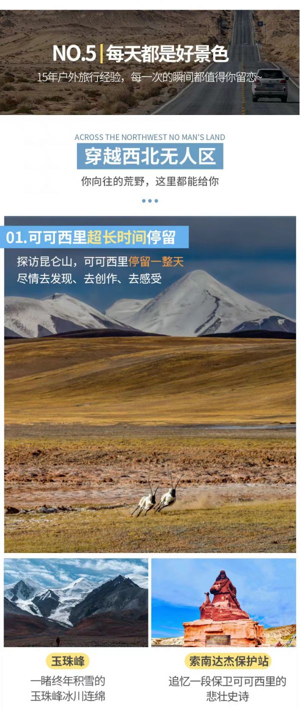 格爾木 — 【可可西里腹地全天】玉珠峰觀景臺、昆侖山口、索南達杰保護站、邂逅藏羚羊藏野驢等高原精靈 — 格爾木