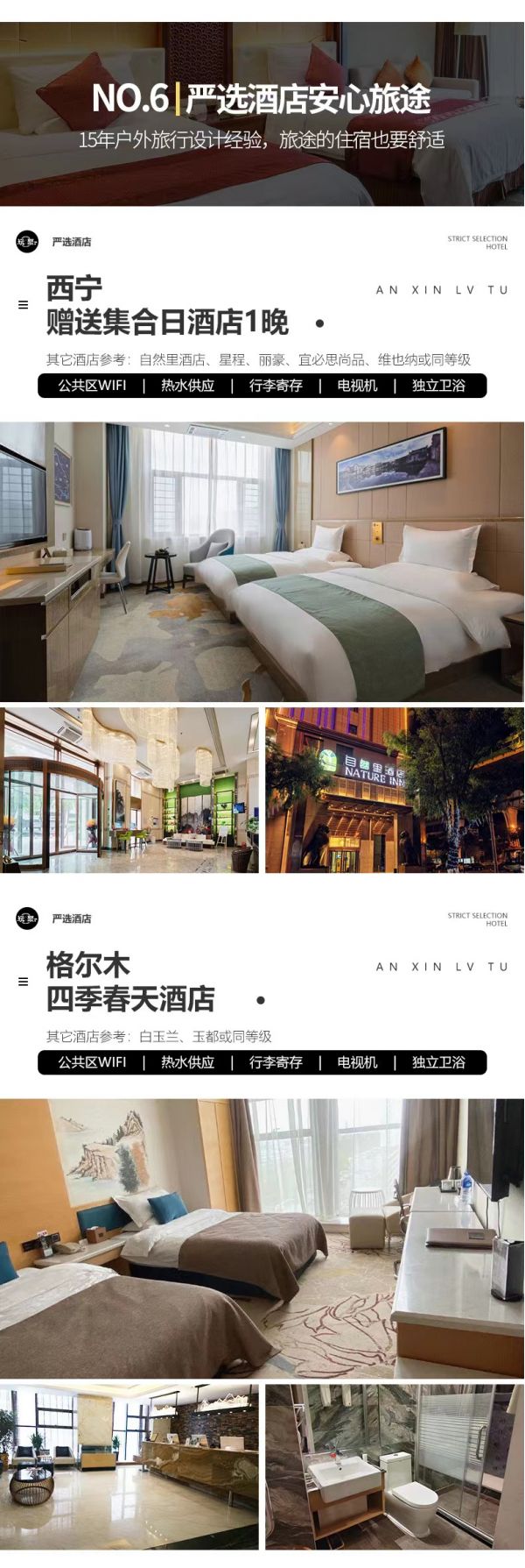 5、該線路為特種線路,當?shù)鼐频昙安惋嫍l件無法與城市相比,請游客做好心理準備;賓館內(nèi)無牙膏牙刷、拖鞋等一次性衛(wèi)生用品,請自備個人衛(wèi)生用品;沿途商店較少,民俗習慣亦有不同,游客可自備咸菜、小吃、干糧等零食,以備不時之需。