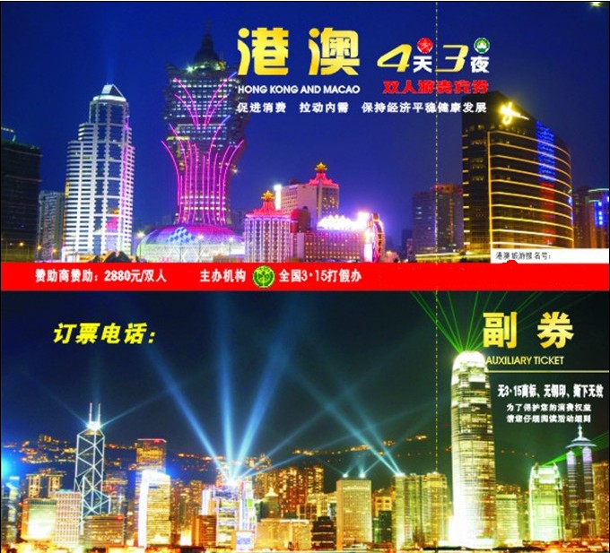 歲末年關(guān)正是商家的打折促銷季,某家電品牌推出了買家電贈(zèng)送價(jià)值3980元的港澳4天3夜雙人游貴賓券活動(dòng)。此券由名為“中國(guó)深圳國(guó)際旅游集團(tuán)”主辦,持券人僅需交納港、澳導(dǎo)游、司機(jī)小費(fèi)及港澳口岸服務(wù)費(fèi)、離境稅等220元,而在港澳期間的交通、住宿、餐飲、景點(diǎn)門票及保險(xiǎn)費(fèi)用全費(fèi)。張先生夫婦覺(jué)得很劃算,拿到旅游券后就報(bào)了名,按照要求時(shí)間在深圳集合。同團(tuán)有近30名游客,手中的券有買保險(xiǎn)贈(zèng)的,有買手機(jī)贈(zèng)的,有做美容贈(zèng)的,都不是在旅行社花錢參的團(tuán)。張先生覺(jué)得有些不對(duì)勁,這時(shí)老伴指著旅游券說(shuō):“你看,上面都寫了本次活動(dòng)絕無(wú)強(qiáng)制性消費(fèi)、欺騙游客行為,肯定沒(méi)事!”結(jié)果,接下來(lái)的幾天行程簡(jiǎn)直是噩夢(mèng)一般的遭遇:導(dǎo)游天天帶大家到珠寶店、手表店購(gòu)物;商品質(zhì)次價(jià)高,同團(tuán)游客不愿購(gòu)買,東躲西藏地躲導(dǎo)游,導(dǎo)游就威脅辱罵;張先生夫婦已經(jīng)買了5000元的商品,導(dǎo)游還不滿意,聲稱不買到他滿意的金額就用集裝箱將游客拉到澳門去。行程結(jié)束后,張先生向旅游部門投訴。經(jīng)核實(shí),所謂“中國(guó)深圳國(guó)際旅游集團(tuán)”純系子虛烏有。