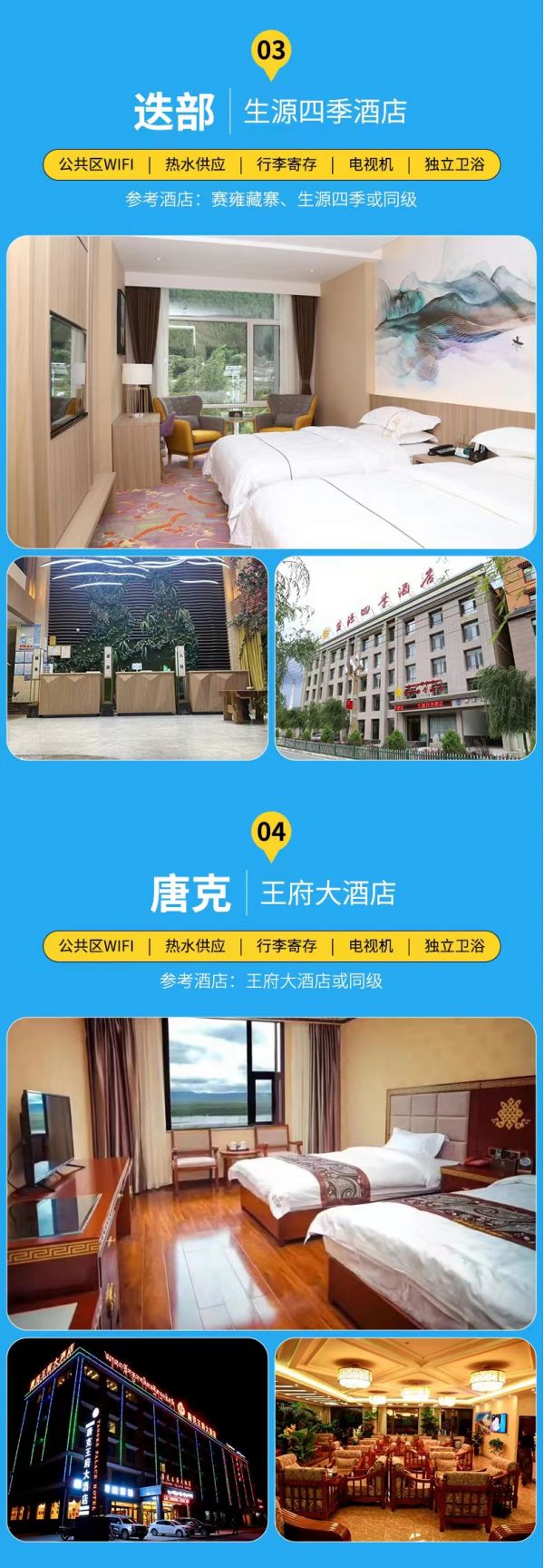 5、該線路為特種線路,當(dāng)?shù)鼐频昙安惋嫍l件無法與城市相比,請游客做好心理準(zhǔn)備;賓館內(nèi)無牙膏牙刷、拖鞋等一次性衛(wèi)生用品,請自備個人衛(wèi)生用品;沿途商店較少,民俗習(xí)慣亦有不同,游客可自備咸菜、小吃、干糧等零食,以備不時之需。